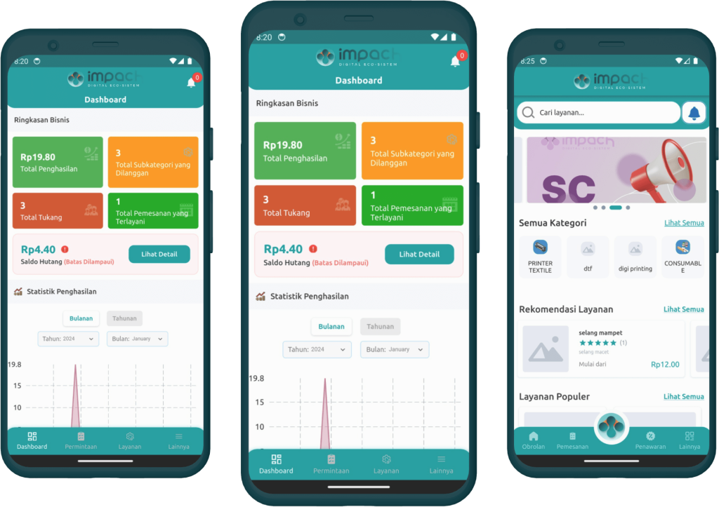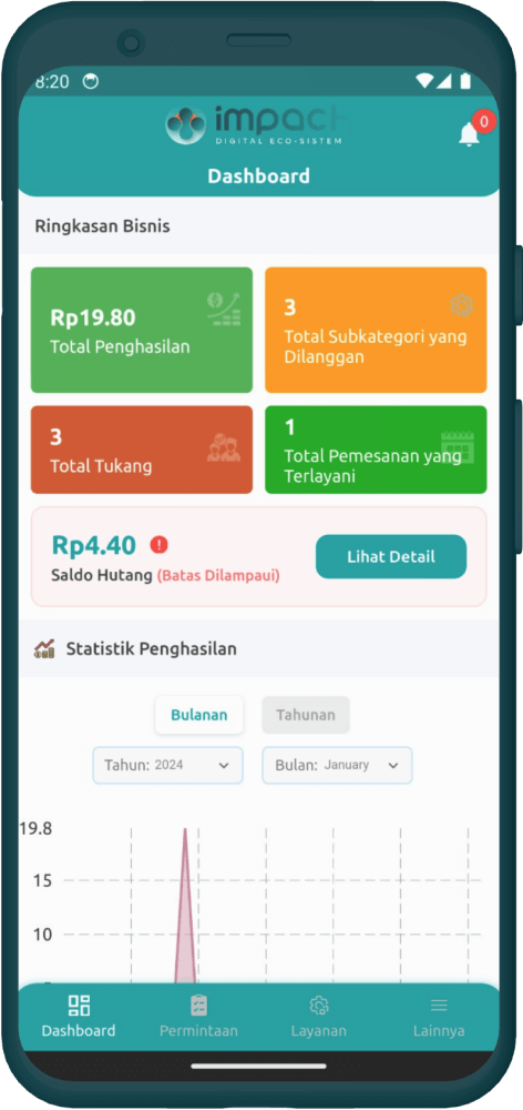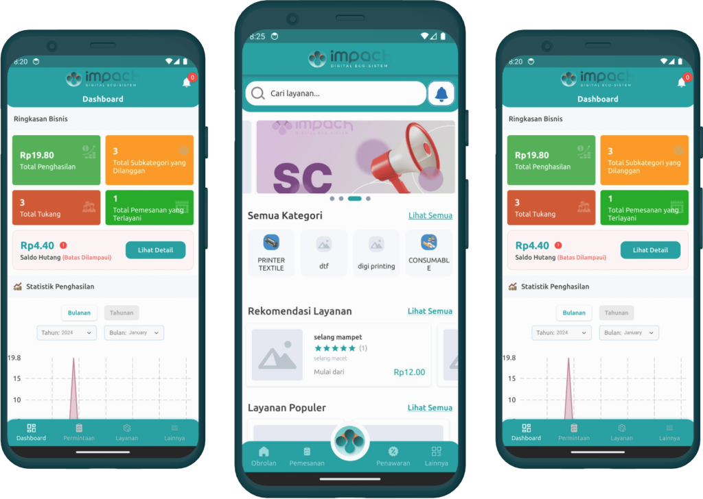 Dengan Impach Service, Dapat Mempermudah Semua Layanan Teknisi Service Anda. Dengan Berbasis Multiplatform Yang Dapat Melakukan Monitoring Secara Digital